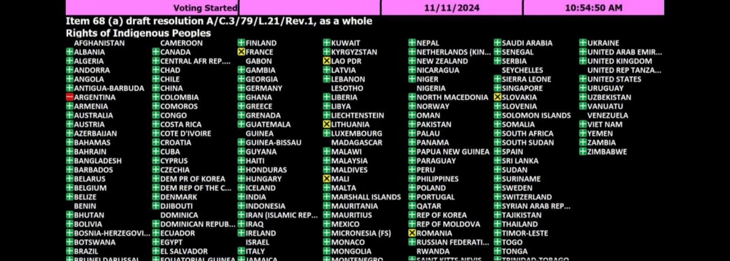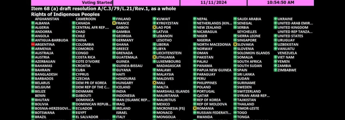 La Argentina sorprendió al votar en contra de una resolución de la ONU que bregaba por el respeto a los derechos de los pueblos indígenas. Fue el único país del mundo que votó en ese sentido. Además hubo siete abstenciones. El resto fueron todos votos a favor. Las comunidades salieron a rechazar lo votado por la representación del Estado argentino.